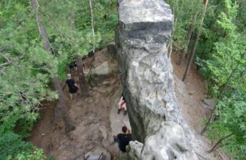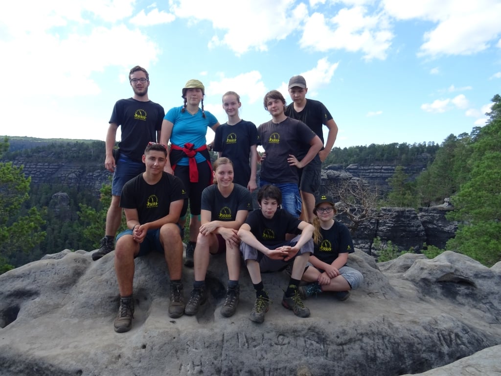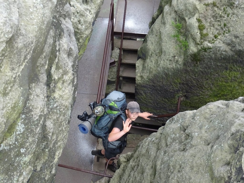 Probuzení ranním budíčkem jsme se sbalili a vyrazili do Jetřichovických stěn, kde jsme procházeli úzkými schody a hlubokými údolími. Při návštěvě další vesnice jsme doplnili zásoby vody a pro zájemce zde byla možnost doplnit i energii. Po krátké zastávce jsme navštívili jeskyni s trpaslíky. Cestou k našemu nocležišti jsme se dobře vykoupali na koupališti, spali jsme u čedičového kužele.